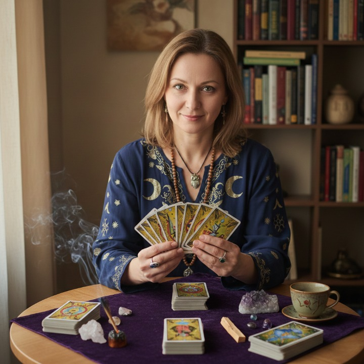 Моя історія: У віці 25 років я пережила болюче розставання. Тоді я вперше звернулася до карт Таро — і вони відкрили мені правду, у якій я сама боялася зізнатися. Це змінило моє життя. Тепер я допомагаю іншим жінкам знайти відповіді та щастя в коханні.